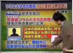 Moguro FukuzouThe exact date of broadcasting this TV program is not known. Probably, Mr. An Byon-jik, Professor Emeritus of the Seoul University, appeared on a Korean TV program sometime in winter of 2006 and his statement was introduced in Japan the following year on this TV program with the above title. As I trust his opinion is worth listing to, I translate what the Japanese moderator said on the TV.